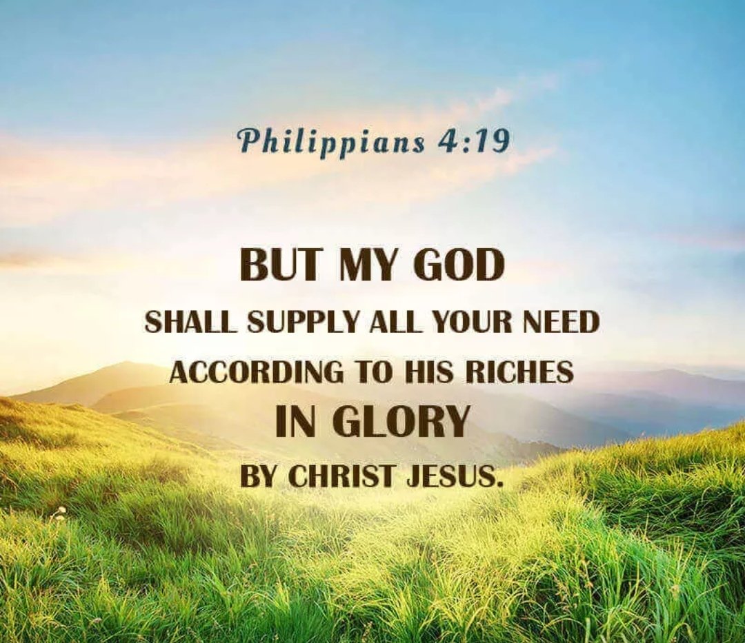 God will meet our needs according to His great riches. There is a principle at work in this matter which we should all learn and put into practice. Read also Luke 6:38 and 2 Corinthians 9:6-8.